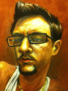 There is not much to say about this guy here.. except that he is an artist.. blah blah blah. Anyway, the only thing I did differently was my approach. I started this self portrait by using a colorless blender to sketch my face. Usually, during this process, I would use a graphite pencil for my sketch but I couldn't this time. On suede, the colorless blender creates easily visible lines compared to a traditional graphite sketching pencil. The blender allows for depressions to reflect light that cause highlights that are much easier to decipher. There is one problem though. You must make sure that your blender is clean of other colors. If not, just like the color stix, the blender will leave unwarranted marks within your drawing and it is not very consistent. Be careful in areas that you plan to leave.. colorless.